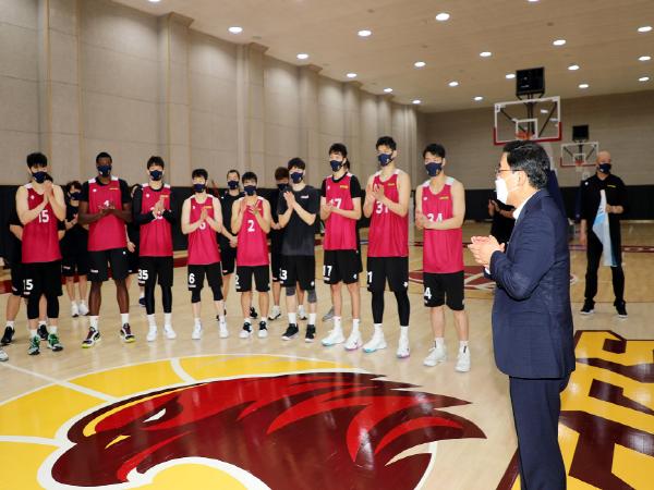 허성무 창원시장은 17일 창원체육관에서 전용훈련장 이전 등 연고지에 정착해 훈련을 시작한 창원LG세이커스 농구단을 찾아 현장점검 등 뜻깊은 소통의 시간을 가졌다.