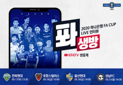 KFA(대한축구협회)가 2020 하나은행 FA CUP LIVE 인터뷰 ‘퐈(FA)생방’을 KFA TV 유튜브 채널을 통해 진행한다.