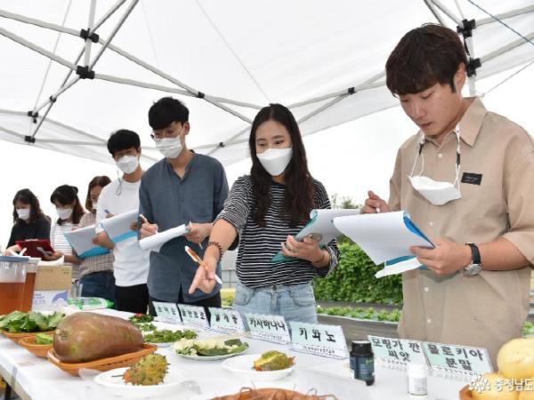 충남도 농업기술원은 17일 기술원 내 아열대 작물 시험포에서 ‘충남지역 적합 아열대 작물 현장평가회’를 개최했다.