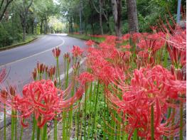 이제 막 개화를 시작한 꽃무릇은 꽃대를 길게 올리며 산기슭이나 풀밭에 무리지어 자라는 것이 특징이며 9월 중순에서 하순이 절정으로 매년 9월 20일 전후가 꽃무릇의 최고 빛깔을 감상할 수 있는 시기다.