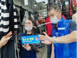 독산3동 주민자치회는 주민자치 위원들이 마스크 착용 안내 표지 1,200매를 자체 제작해 지역 상가 출입문 등에 직접 부착하고, 코로나19로 힘들어하는 자영업자들을 위로하고 주민들과 소통하는 시간을 마련했다.