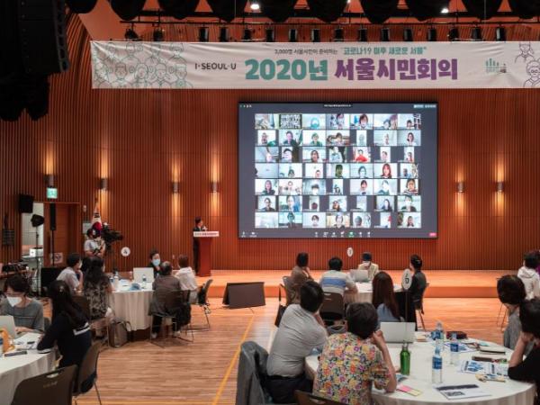 서울시가 코로나19로 촉발된 대전환의 시대를 예측하고 시민 집단지성으로 새로운 서울을 준비하기 위한 100일간의 대장정을 마무리하는 ?2020 서울시민회의? ‘시민총회’를 열어 Top10 정책을 뽑는다. 19일(토) 14시에 서울시청 다목적홀에서 온?오프라인 동시에 개최된다.