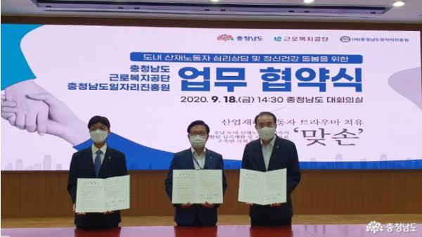 충남도와 근로복지공단, 충남일자리진흥원이 산업재해로 고통을 겪는 재해노동자의 트라우마 치유를 위해 손을 맞잡았다.
