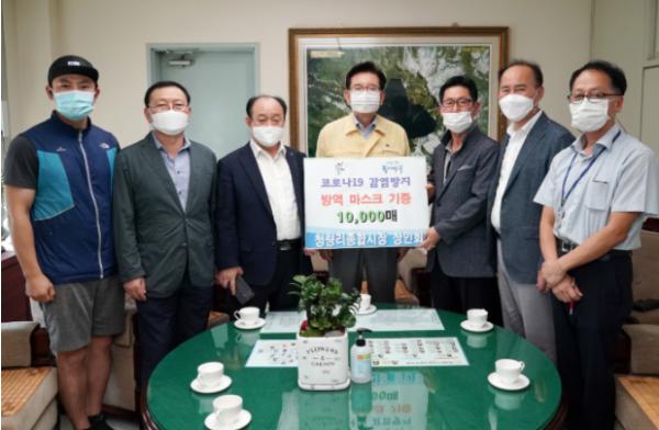 18일 오후 2시 구청장실에서 유덕열 동대문구청장, 김인근 청량리종합시장 상인회장 및 관계자 4명이 참석한 가운데 마스크 전달식이 진행됐다.