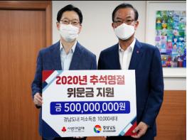 경남사회복지공동모금회가 추석을 맞아 어려운 이웃을 돕기 위한 위문금 5억 원을 경상남도에 전달했다.