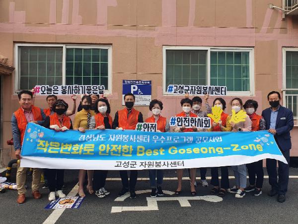 경상남도 자원봉사센터 우수프로그램 공모사업에 선정된 ‘작은 변화로 안전한 Best Goseong Zone’프로그램의 일환으로 마련된 이번 사업은 장애인전용주차구역 진입로 바닥에 특수 알루미늄 스티커 및 안내표지판을 설치해 보행자와 운전자에게 장애인전용주차구역 불법행위에 대한 경각심을 불러일으키고자 진행했다.
