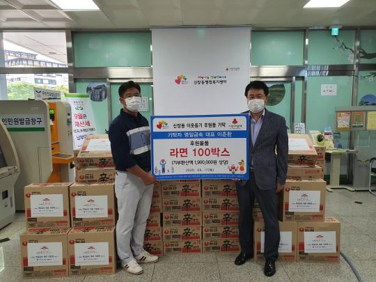 오산시 신장동행정복지센터(동장 유영만)는 지난 17일 명일금속(대표 이춘환)에서 지역 내 취약계층 아동을 위해 라면 100박스(190만원 상당)를 후원했다고 밝혔다.