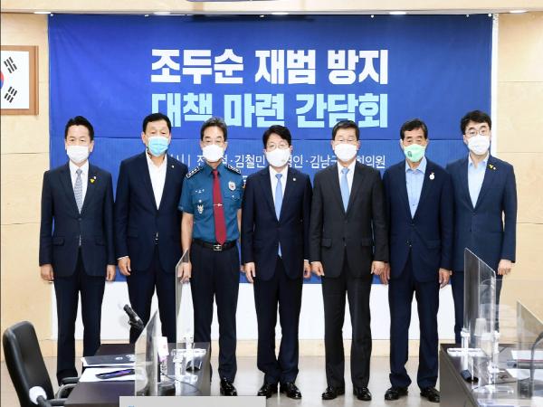 회의에 참석한 전해철 의원은 “법무부와 경찰 등이 조두순 출소와 관련한 대책을 준비하면 국회 차원에서 적극 검토해서 진행하도록 노력하겠다”고 말했다.