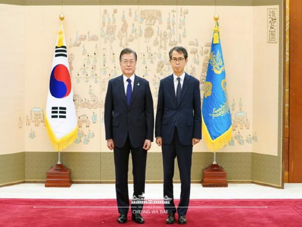문 대통령은 임명장 수여식 이후 가진 환담 자리에서 우리 사회에서 법과 정의를 구현하는데 대법원 역할의 중요성을 강조하면서, 모든 영역에서 다양한 가치들을 골고루 반영하고 중심을 잡아주기를 기대한다고 말했다.