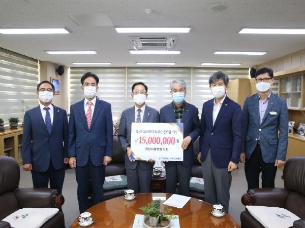 경상남도미래교육재단(이사장 박종훈 경상남도교육감)은 18일 오전 경남지방변호사회에서 교육감실을 방문해 도내 특성화고등학생을 위한 장학금 1,500만 원을 기탁했다고 밝혔다.