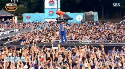 이어 '연예인', '챔피언', '흔들어주세요', '예술이야' 등 싸이의 히트곡 무대들이 이어졌고, '싸이 흠뻑쇼'의 백미인 물대포가 관객석을 향했다. 수만 관객들의 떼창 함성과 떼춤, 레이저 조명과 폭죽 등이 어우러지며 공연장은 열기로 뜨겁게 달궈졌다.