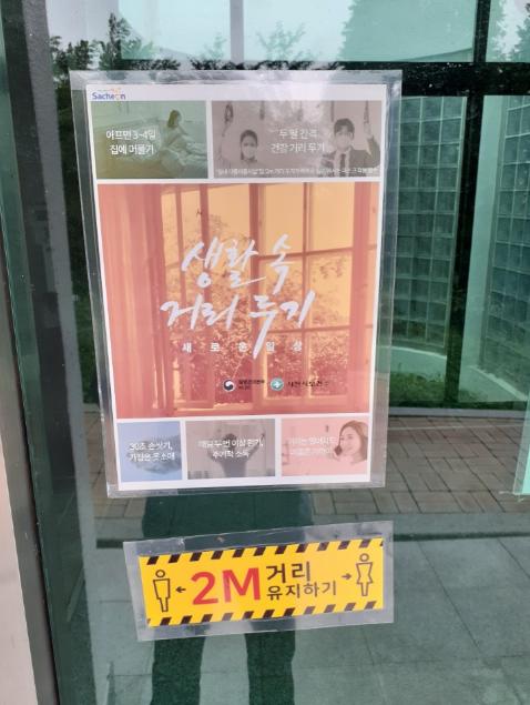 공중화장실 입구에는 다른 사람과 2m 이상 거리두기 등 세부지침 이행을 알리는 알림전단지를 부착하고, 기존 소독활동에 더하여 희망일자리사업의 일환으로 추가적인 연무방역을 주기적으로 실시한다.