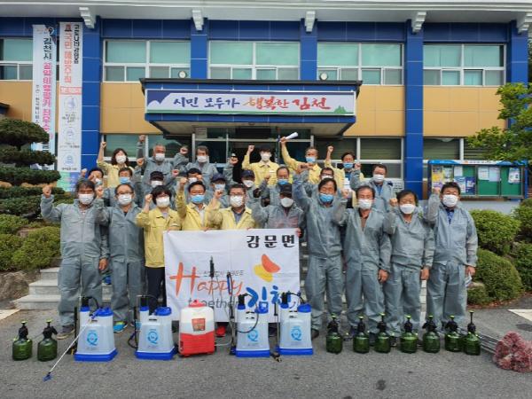 이장협의회에서는 자체 방역팀을 구성하여 감문면 직원들과 함께 마을회관, 버스승강장, 야외쉼터 등을 대상으로 집중방역을 실시하였고 전국적으로 사회적 거리두기 2단계를 염두에 두어 코로나19 예방수칙도 홍보하였다.