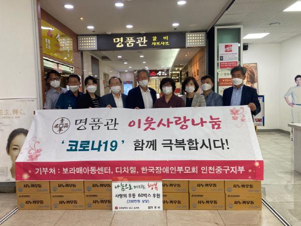 인천 중구 운서동에 소재한 명품관(사장 김진경)에서는 지난 18일 중구 내 사회복지 시설ㆍ단체 디차힐, 인천 보라매 아동센터, 인천 장애인부모회 인천중구지부에 우동 각 20박스를 지원했다고 밝혔다.