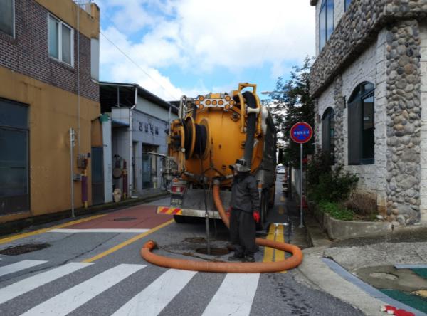군은 그동안 음식점 밀집 지역과 주거지역에서 흘러나온 유지류 등이 하수관로에 퇴적되고, 고형화되어 오수냄새를 유발시키는 것으로 판단해 이번에 하수관 준설을 시행하기로 한 것.