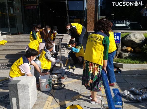 진주시 무장애도시 상대동 위원회(위원장 옥예선)는 21일 관내 다중이용 사업장을 대상으로 사업장 출입구 낮추기 사업 봉사활동을 실시하였다.