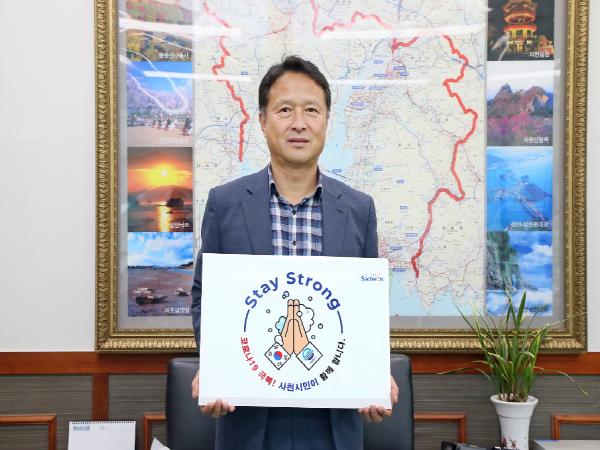 최재원 사천시 부시장은 코로나19 감염사태의 조기종식을 기원하고 시민들에게 희망을 주기 위해 지난 18일 ‘스테이 스트롱(Stay Strong)’캠페인에 동참했다.