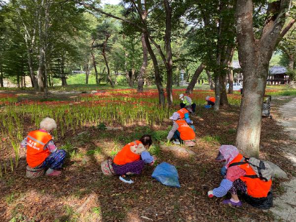 거창군 북상면(면장 성수용)은 잡초 때문에 상사화 본연의 아름다움이 가려져 있어, 지난 17일부터 21일까지 노인일자리사업 및 희망일자리사업을 통해 상사화 군락지 주변 잡초 제거에 나섰다.