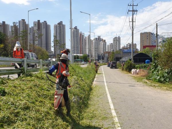 김포시는 추석을 맞아 깨끗하고 안전한 도로환경 조성을 위해 48번 국도와 김포한강로를 포함한 관내 주요 도로변 제초작업을 진행 중이라고 밝혔다.