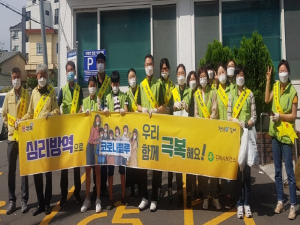 김해시는 지난 19일 동상동 일대에서 ‘코로나블루’극복을 위한 심리방역 홍보 캠페인을 전개했다고 밝혔다.