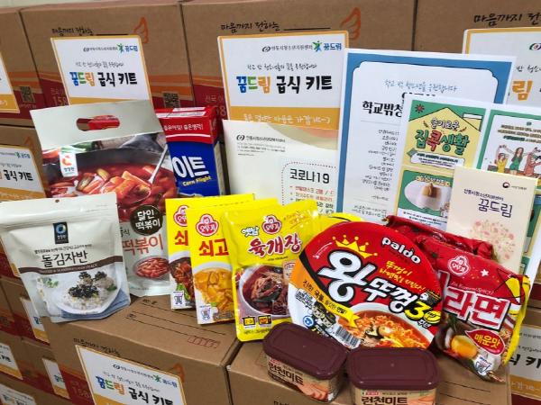 코로나19로 인해 센터방문이 불가하여 비대면 방식으로 진행되는 이번 급식지원은 올해 시작된 학교 밖 청소년 급식 지원사업의 일환이다. 지원되는 꿈드림 급식키트는 1차 급식키트 지원 후 청소년들의 선호도 조사를 통해 메뉴를 추가 및 수정했다. 2차 키트에는 시리얼,햇반,참치,햄,라면,김 등 총 10종을 담아 청소년 가정으로 배송한다.