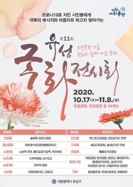 대전 유성구(구청장 정용래)는 10월 17일부터 11월 8일까지 23일간 마을 곳곳을 물들일 ‘제11회 유성 국화전시회’를 개최한다고 23일 밝혔다.