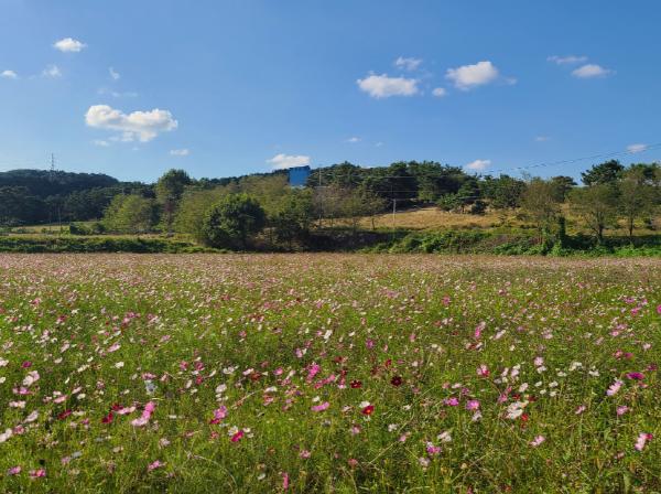 시는 23일 금강농산과 주변 농경지에 코스모스 꽃밭 조성을 완료했다고 밝혔다. 이곳은 저수지 주변을 따라 코스모스가 활짝 피어 가을의 정취를 더해주고 있으며 환경재난으로 고통받은 장점마을 주민들의 마음을 치유할 수 있는 꽃동산으로 탈바꿈됐다.
