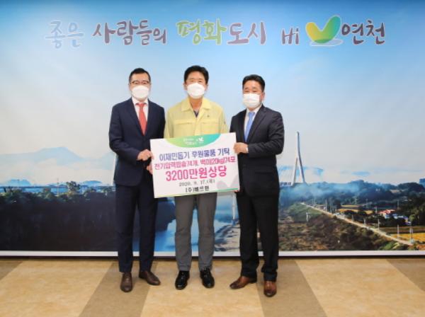 또한, 전곡읍 양연로 소재 베르원(주) 구성욱 대표이사는 연천군의 집중호우 피해 소식을 듣고 집중호우로 큰 피해를 입은 연천군에 긴급 이재민 구호물품 3천2백만원 상당을 지원하여 훈훈한 지역사회를 조성했다.