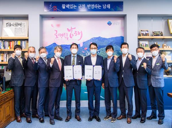 남해군(군수 장충남)은 22일 군수실에서 잭슨나인스 주식회사(대표 황성태)와 사업 협약을 체결했다.
