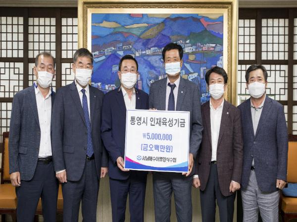 서남해수어류양식수협은 1995년 양식 어업인들이 모여 설립된 업종별 수협으로 기르는 어업을 기반으로 수산물유통, 구매사업, 금융업무 등을 추진하여 어류양식 어업인들의 지위향상과 지역수산경제 발전을 위해 노력하고 있으며 지난 2017년부터 매년 인재육성기금 500만원을 통영시에 기탁해 오고 있다.