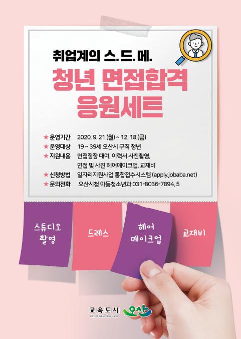 오산시(시장 곽상욱)는 청년 구직자들의 취업준비 비용 부담을 낮추고 취업 지원을 강화하기 위해 ‘청년 면접합격 응원세트’ 사업을 실시한다.
