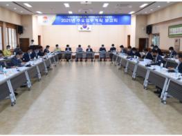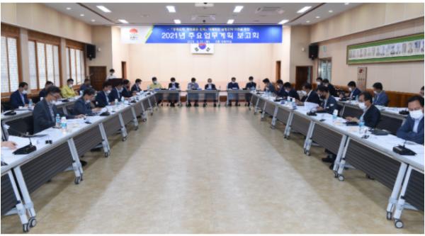 시는 지난 22일 시청 3층 대회의실에서 박준배 시장 주재로 부시장, 국·소장, 실과소장 40여명이 참석한 가운데 2021년 주요 업무 계획에 대한 부서별 보고회를 가졌다.