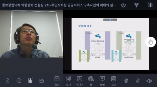 이번 교육에서는 지역사회 내 행정기관, 민간기관 및 단체 등이 생산하는 다양한 공공서비스를 주민 관점에서 연계·제공하는 공공서비스의 사례, 협력 체계 구축 방향 등에 대해 설명하고 주민자치형 공공서비스 구축사업에 대한 맞춤형 컨설팅도 진행했다.