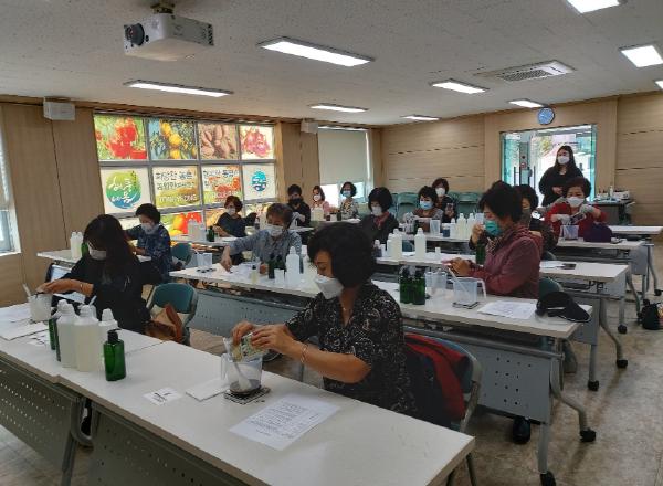 이날 교육은 천연한방삼푸 만들기 과정으로 두피 관리법 및 올바른 삼푸요령에 대한 이해와 직접 삼푸를 만들어 보는 것으로 이루어졌다.