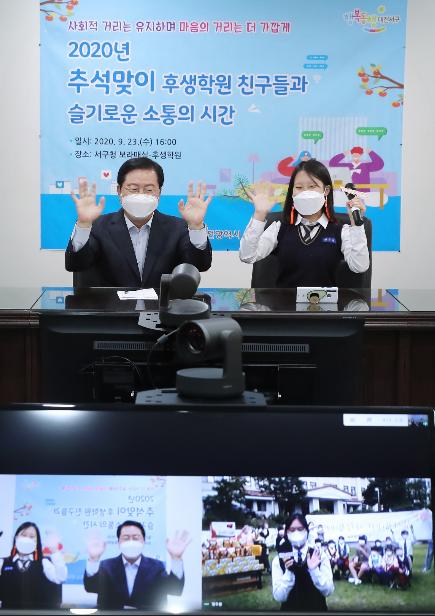 대전 서구(구청장 장종태)는 23일 추석을 앞두고 아동 시설과 실시간 영상 연결을 통해 아이들과 종사자를 위문하는 ‘추석맞이 후생학원 친구들과 슬기로운 소통의 시간’행사를 진행했다.