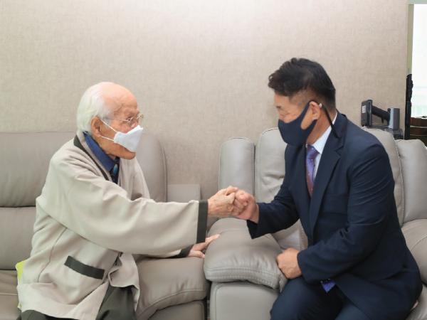 서철모 대전시 행정부시장은 추석 명절을 맞아 23일 오후 유성구 계산동에 거주하는 정완진 애국지사 댁을 방문하여 위문품을 전달하고 감사와 존경의 마음을 전했다.