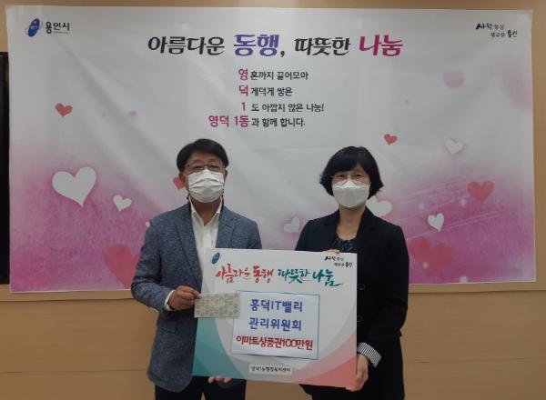 용인시 기흥구 영덕1동은 23일 흥덕IT밸리센터 관리위원회가 관내 어려운 이웃을 위해 써 달라며 100만원 상당의 상품권을 기탁했다고 밝혔다.