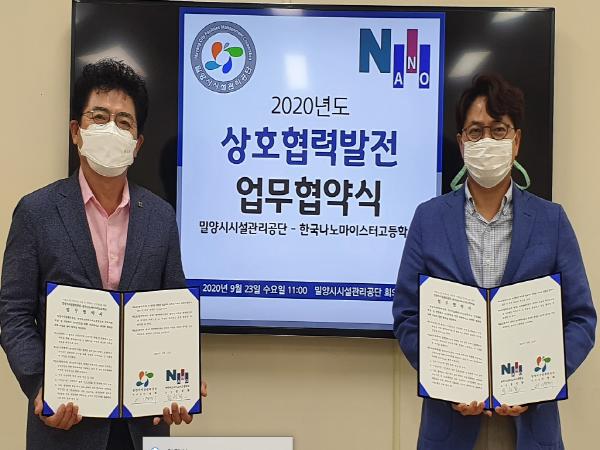 밀양시시설관리공단은 한국나노마이스터고등학교와 23일 공단 회의실에서 인적자원개발 및 직업계고 인식개선을 위한 활발한 교류 협력을 골자로 하는 업무협약을 체결했다고 밝혔다.