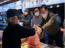 장보기를 통해 동문시장 방문객들과 소통하며 전통시장과 골목상권 이용을 당부하기도 했다.