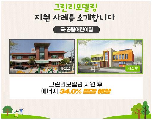 공공건축물 그린리모델링은 취약계층이 이용하는 공공건축물 중 15년에서 30년미만의 노후된 국공립 어린이집, 보건소 및 의료시설에 대해 단열 등을 개선해 에너지 성능을 개선하는 사업이다.