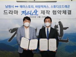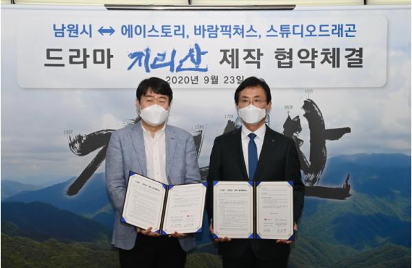 남원시가 23일 드라마 『지리산』 제작사 에이스토리, 스튜디오드래곤, 바람픽쳐스와 업무 협약을 체결했다.