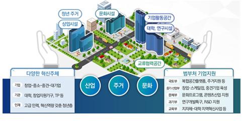 지역 경쟁력 회복의 출발점이 될 도심융합특구는 범정부 역량을 지방 도심에 집중하여 새로운 구심점을 조성하는 사업으로, 지역 특색에 맞게 산업·주거·문화 사업을 융합하여 공간을 정비하고 기업 유치를 위한 각종 지원 등 통합 프로그램을 지원할 계획이다.