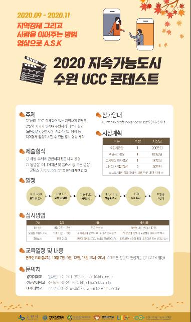 수원시 지속가능도시재단이 9월 29일까지 ‘2020 지속가능도시 UCC 경진대회’ 참가자를 모집한다.