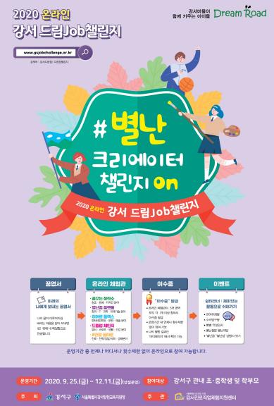 서울 강서구(구청장 노현송)는 지역 중학생과 초등학생들의 직업 체험을 도와 다양한 진로를 탐색할 수 있도록 ‘2020 온라인 강서드림 job챌린지’를 개최한다고 밝혔다.