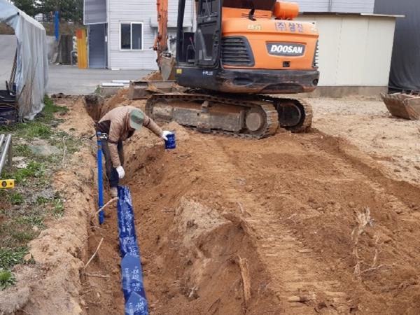 24일 군 상하수도사업소에 따르면 진천읍 소재 (주)삼진은 이월면에 사는 말기암 환자 주민을 위해 200만 원 상당의 급수 공사를 진행했다.
