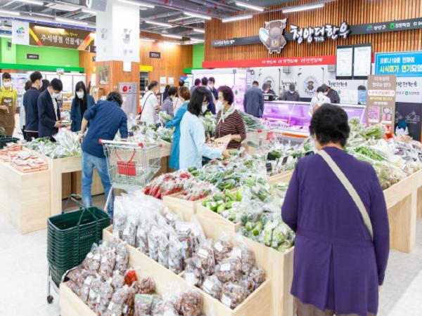또한 정식 개장 전 축산물 코너와 제과?제빵 코너를 완비하고 신선하고 다양한 농산물로 진열대를 가득 채웠다.