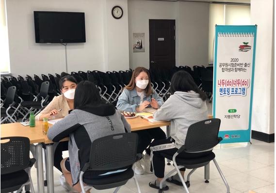 ‘나두(do)너두(do) 멘토링 프로그램’은 공무원시험준비반 출신 지방직 합격생 17명이 멘토가 되고, 수강생 90명이 멘티가 되어 직렬 선택, 과목별 학습법, 모의고사 활용법부터 수험생 시간 관리, 수험생활 마음가짐 등 합격을 위한 수험 전략 전반에 걸쳐 진지한 상담이 이루어지는 프로그램이다.