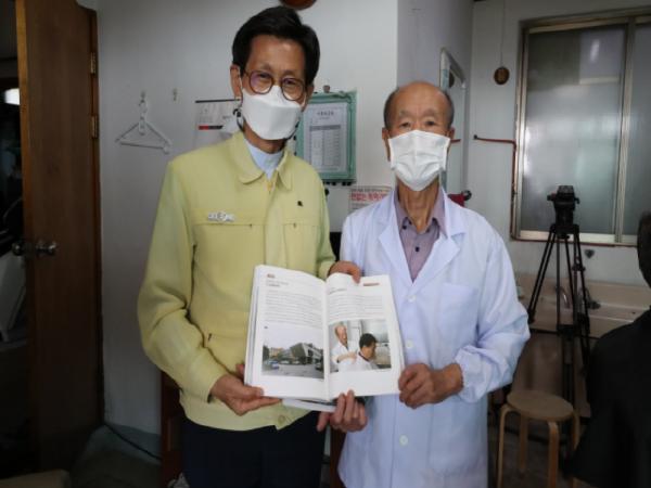 24일 고창군은 ‘한반도 첫수도 고창 기네스 2020’을 발간하고, 유기상 군수가 직접 지역 최장수 이발사인 김하영(64년간 이발관 운영) 할아버지를 찾아 친필 서명한 책을 전달했다.