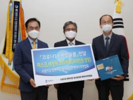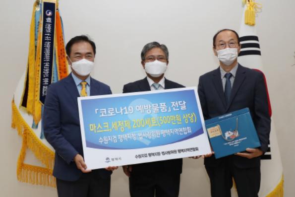 평택시는 수원지방검찰청 평택지청(지청장 신봉수)과 법무부 법사랑위원 평택지역연합회(회장 조남규)는 지난 23일 평택시 대외협력실에서 코로나19로 힘든 시기에 지역사회에 공헌하고, 코로나19 재확산 방지를 위해 마스크 10,000장과 세정제 200개에 상당하는 방역물품 세트 200개를 기탁했다고 밝혔다.