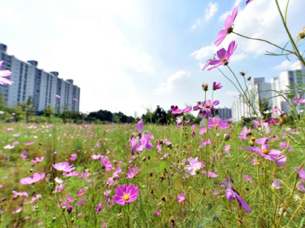화단에는 코스모스과 금계국, 해바라기, 백일홍 등을 심었으며, 잡초제거와 영양분 공급 등 주기적인 관리를 통해 지난 6월부터 꽃이 피고 있다. 현재는 코스모스가 만개해 주민들로부터 큰 호응을 얻고 있다.